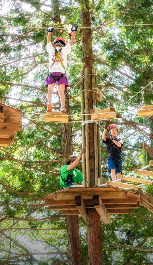 自然の森に作られたコースの高さは最大約9m!大人気のジップスライドは最長65m!