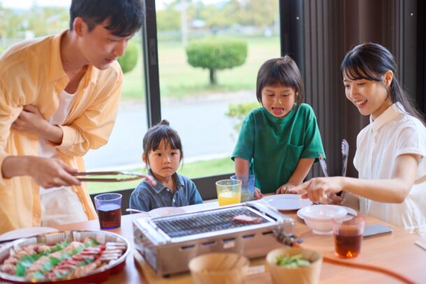 中が広々とした木のぬくもりあふれる空間で、まるで別荘のような時間を。