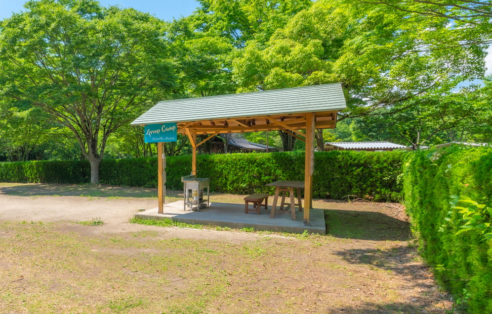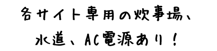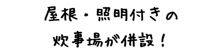 専⽤の屋根、照明付き炊事場と電源を備えております。
