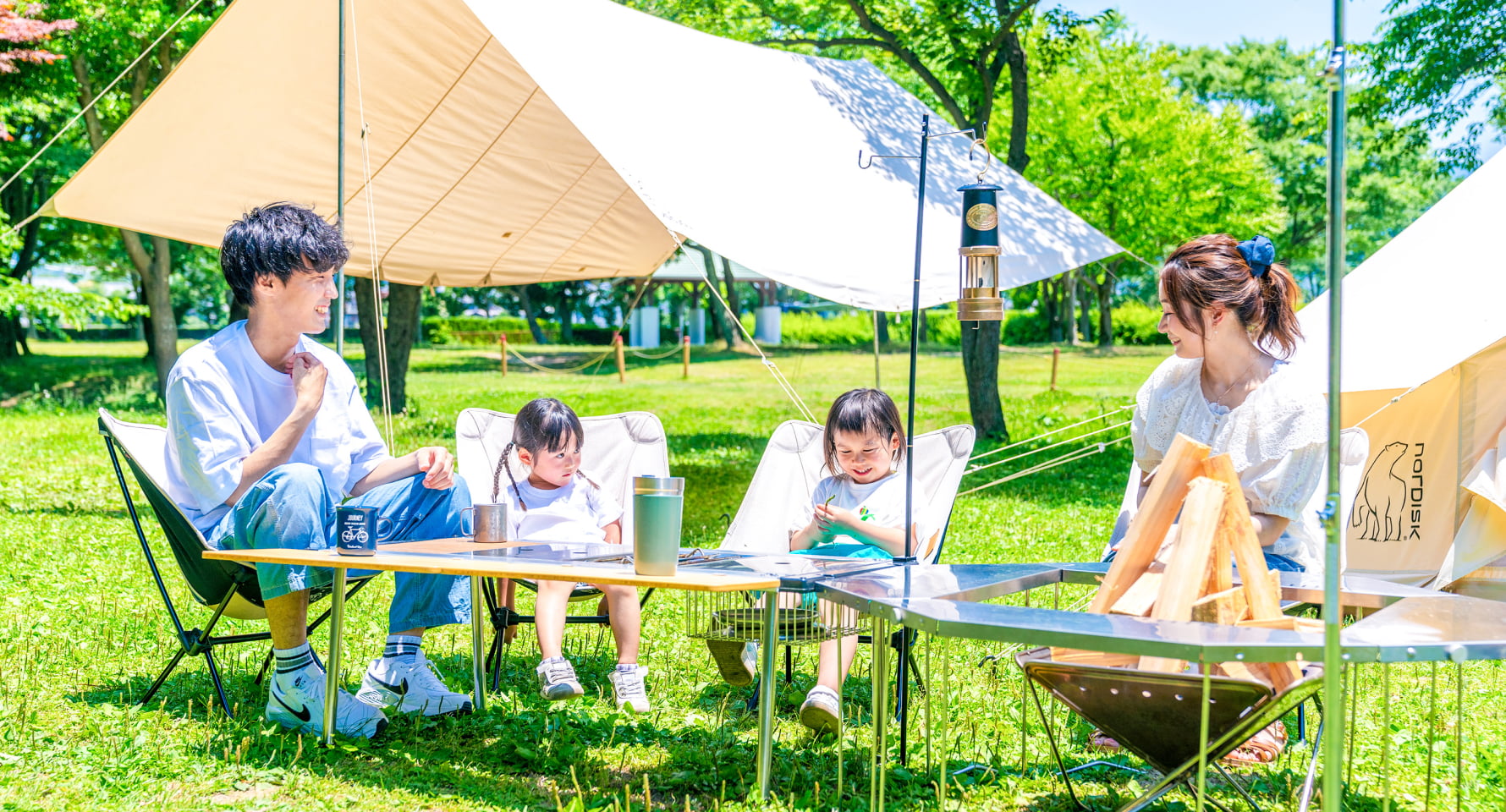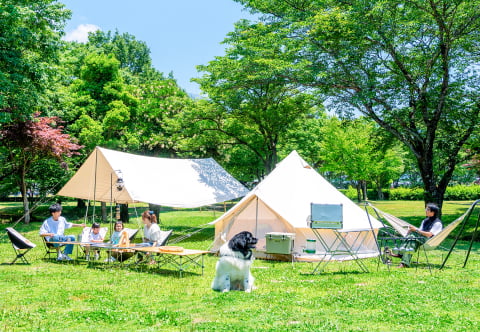 テントやキャンプ用品は、グリーンパーク山東内のショップやレンタルで揃えることも可能です。