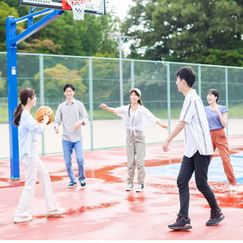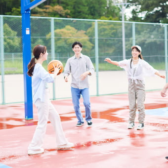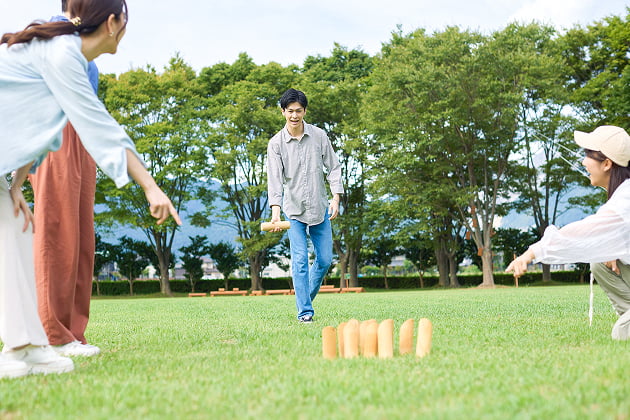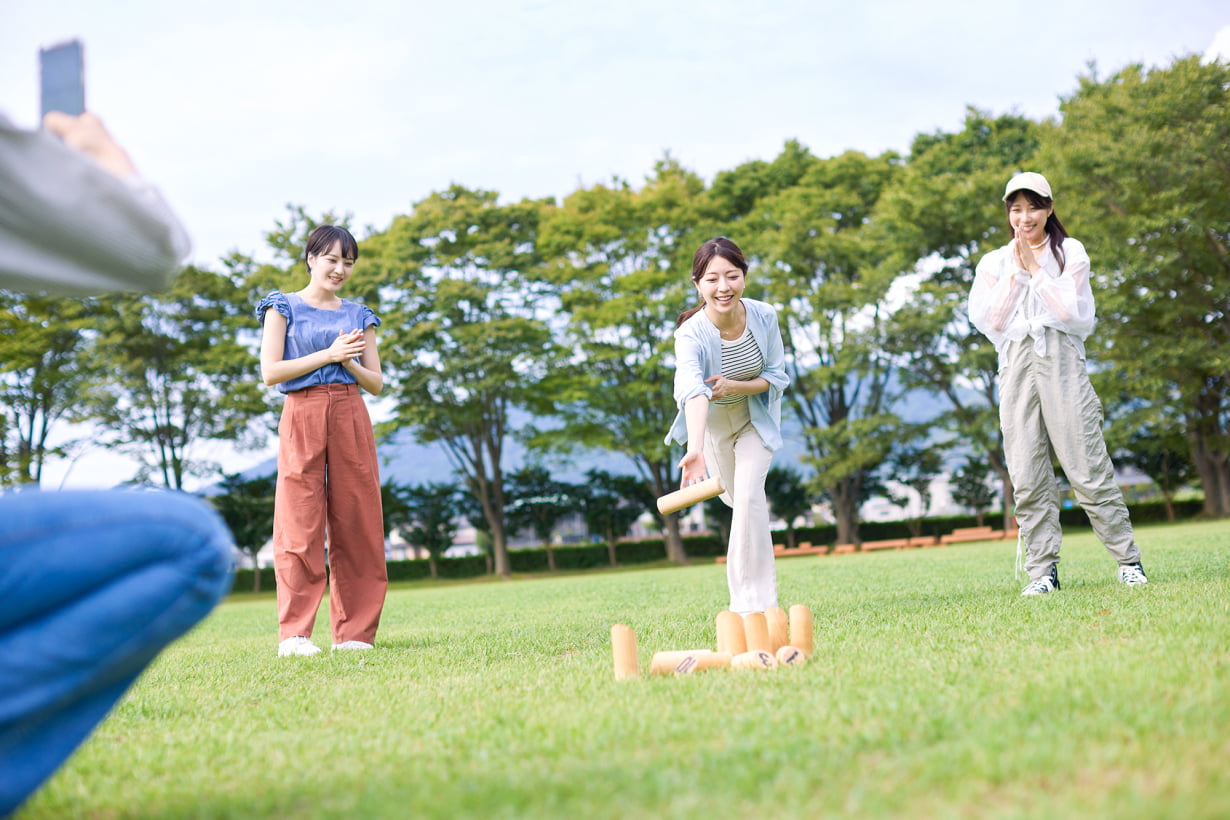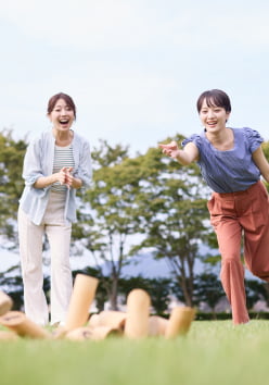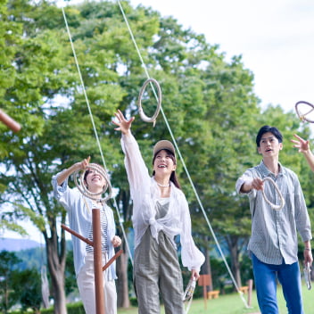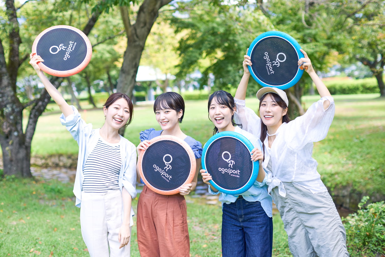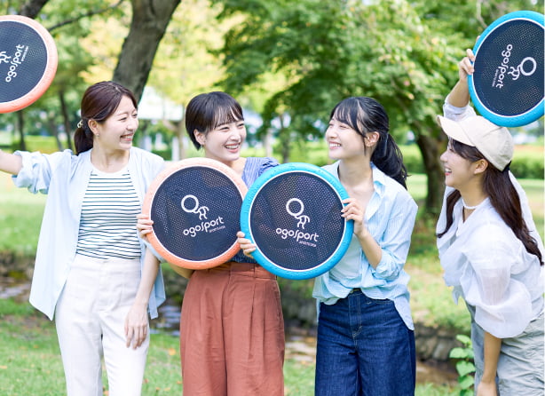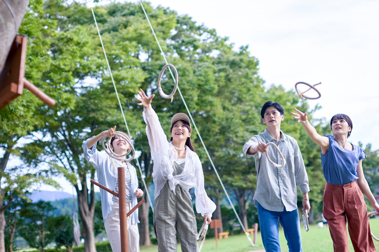 無料で遊べるふれあい広場は、オゴスポーツやバドミントンなど自由にお楽しみいただけます!