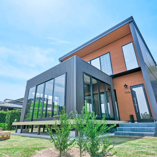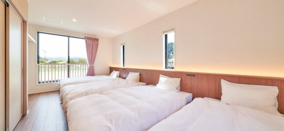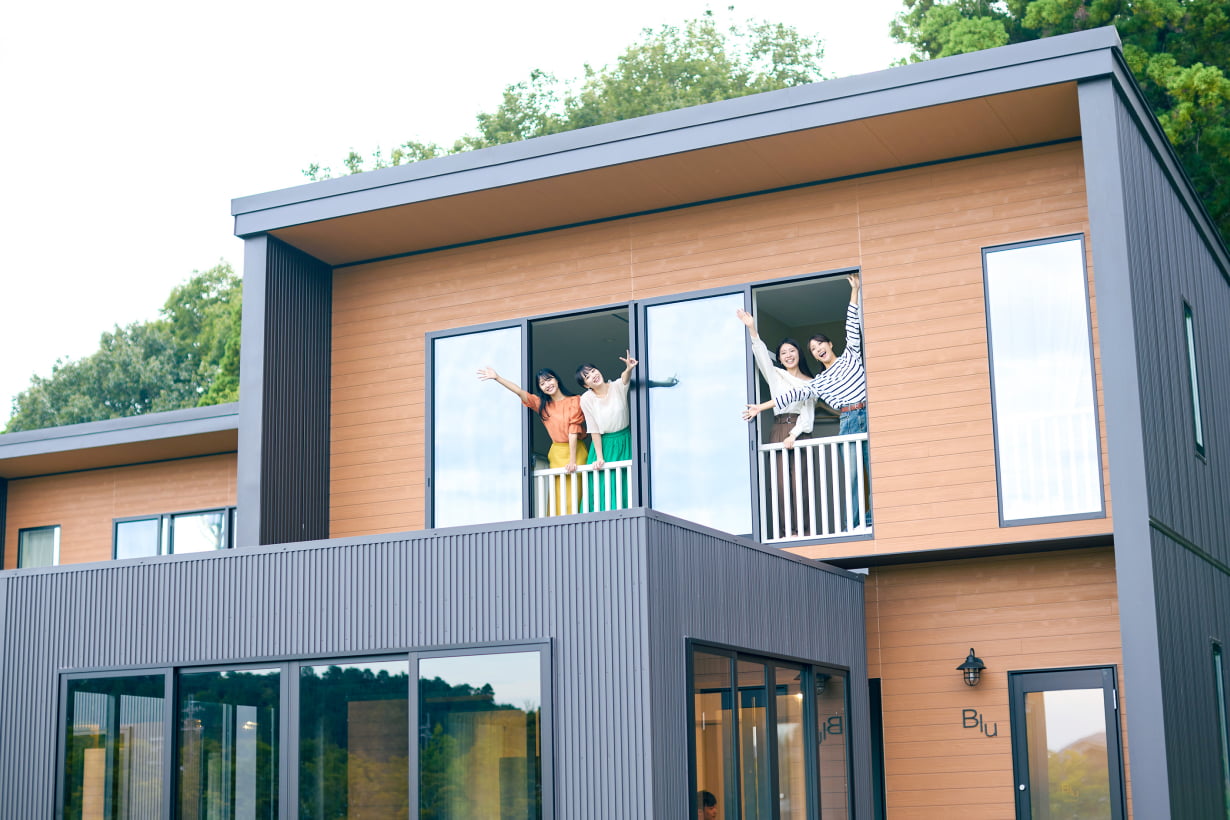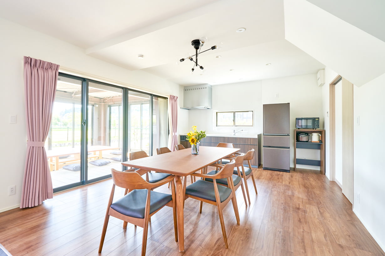 森に寄り添う独立型スウィートヴィラは、全5棟の2階建てテラス付きです。各棟からは四季折々に美しい伊吹山や豊かな自然を一望できます。2階には独立した2つのベッドルームを備え、2家族でも快適に過ごせる贅沢な間取りです。システムキッチンも完備され、ホームパーティーのように料理も楽しめます。大切な人と心地よいひとときを。