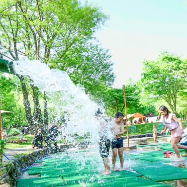 大人も楽しめる広々とした芝生広場や、大自然を活かしたアスレチック。全長100mのロングスライダーや水遊びなど、子ども心に戻って思いきり遊べるアクティビティが満載です!
