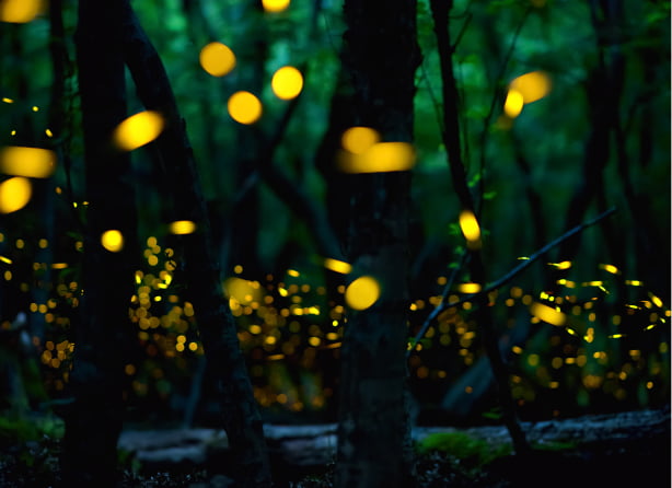三島池の近くを流れる川では、梅雨の時期になるとたくさんのホタルが美しく輝きます。