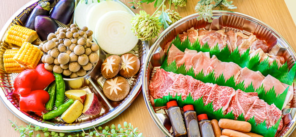 国産黒毛和牛付きの贅沢な「BBQ食材セット」で、買い出し不要の手軽なバーベキューを楽しめます!