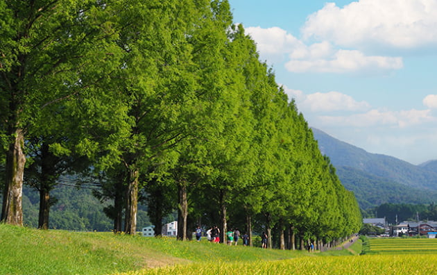約2.4kmにわたりメタセコイアが約500本植えられています。マキノ高原へのアプローチ道として高原らしい景観を形成しています。
