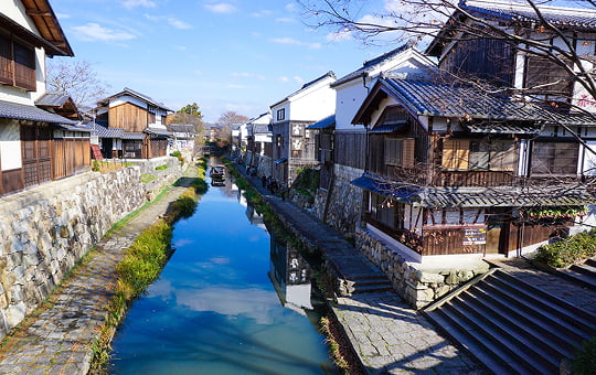 伝統的建造物群を生かした観光スポット。江戸〜明治時代の古建築を活かしたガラスショップ、体験教室、レストランなどが集積します。